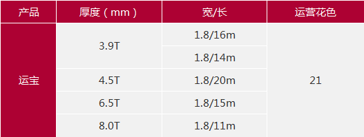 規(guī)格:3.9mm×1.8m×14(16)m/4.5mm×1.8m×20m/6.5mm×1.8m×15mm/8.0mm×1.8m×11m